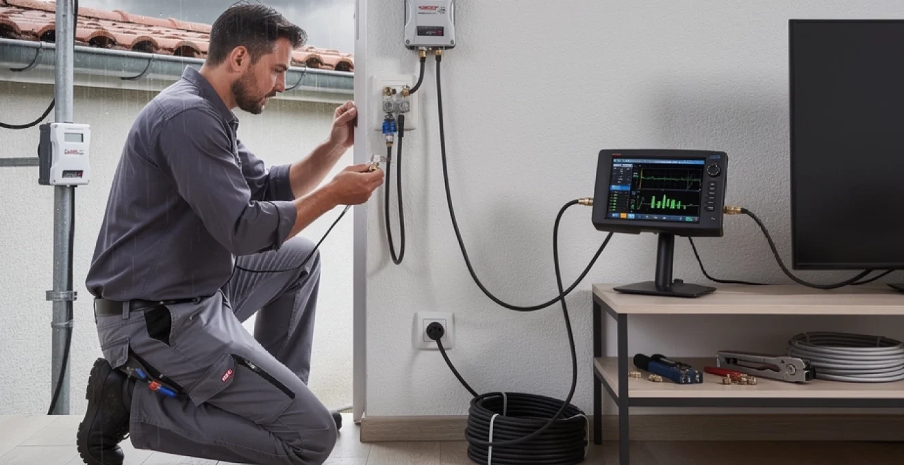 Ensuite, contrôlez visuellement l’état des câbles extérieurs : gaine craquelée, morsures (rongeurs), écrasement dans une fenêtre, infiltrations d’eau au niveau des connecteurs. Le moindre défaut de blindage peut laisser entrer des parasites électromagnétiques qui, une fois amplifiés, saturent le tuner. De même, un boîtier de préampli rempli d’eau ou un connecteur F oxydé se reconnaissent rapidement et doivent être remplacés sans délai.